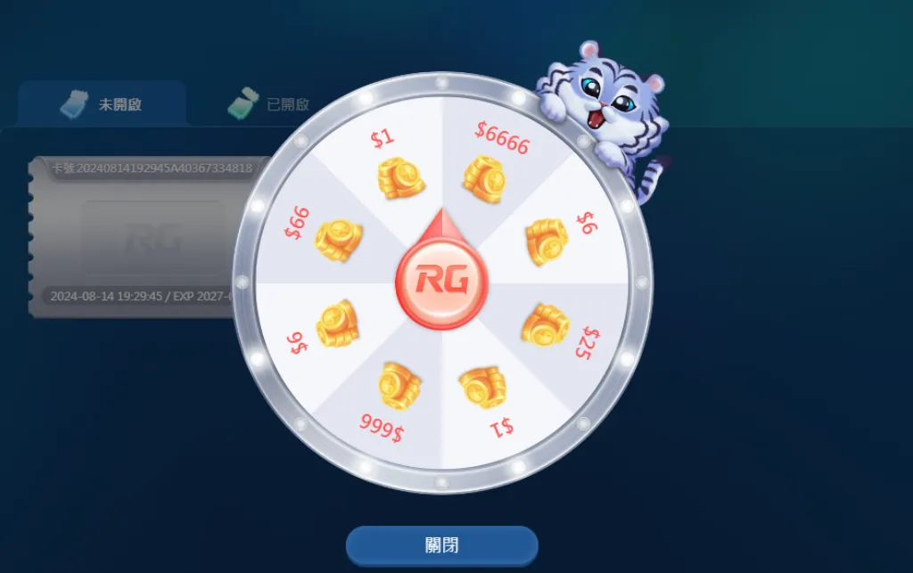 不同顏色票券使用後可以用輪盤抽獎,可以抽出任意獎金,流水一倍,以下是票券獎金詳情: